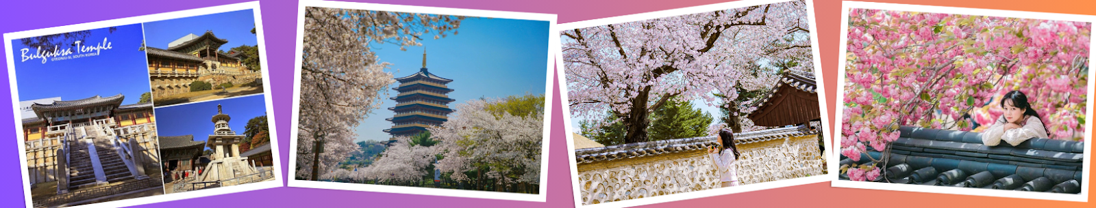 - Đền Bulguksa ngôi đền hơn ngàn năm tuổi và cũng là ngôi đền Phật giáo lớn nhất, đẹp nhất Hàn Quốc, đây cũng là nơi lưu giữ 7 quốc bảo Triều Tiên, bao gồm các tháp đá Dabotap và Seokgatap, Cheongun-gyo (cầu mây xanh), và tượng Phật bằng đồng dát vàng. Chùa Bulguksa cũng là nơi có hoa anh đào kép nở rộ vào tháng 4 đến đầu tháng 5.