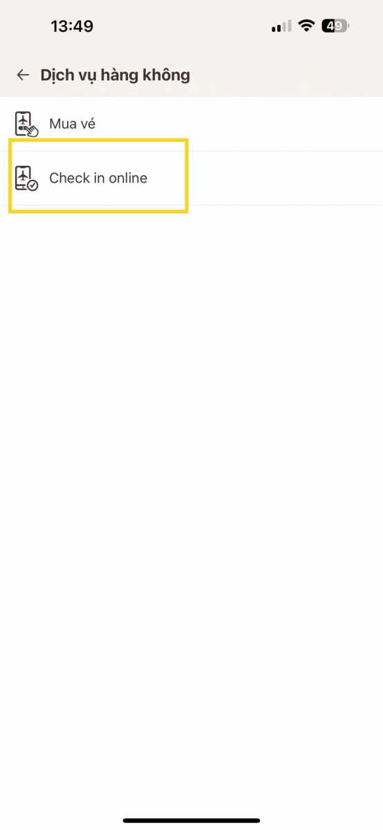 Bước 3: Chọn mục "Dịch vụ hàng không".