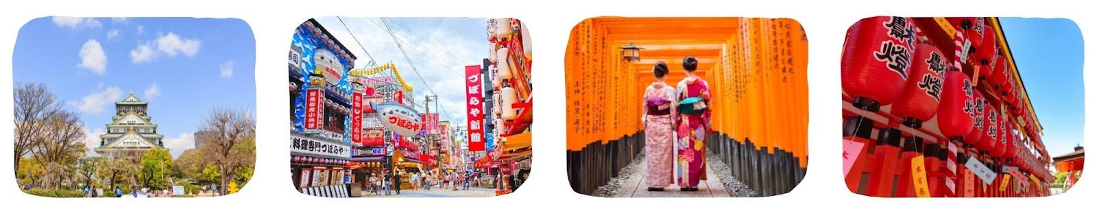 + Khám phá những danh lam nổi tiếng ở Nhật Bản như: Phố cổ Takayama, Lâu đài Matsumoto, Lâu đài Osaka, Đền Fushimi Inari, làng cổ Oshino Hakai, chùa Quan Âm Asakusa…