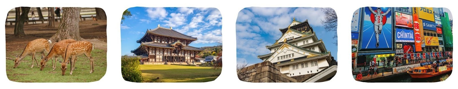 - Công viên Nara - một trong những công viên rộng nhất Nhật Bản với diện tích lên đến gần 700ha, trải rộng và được phủ bởi một lớp cỏ xanh mướt. Công viên Nara còn được du khách gọi bằng tên thân mật hơn là Deer park – công viên của những chú nai, bởi đây là nơi sinh sống và bảo tồn, chăm sóc của hơn 1200 con nai và hươu thuộc các giống khác nhau.