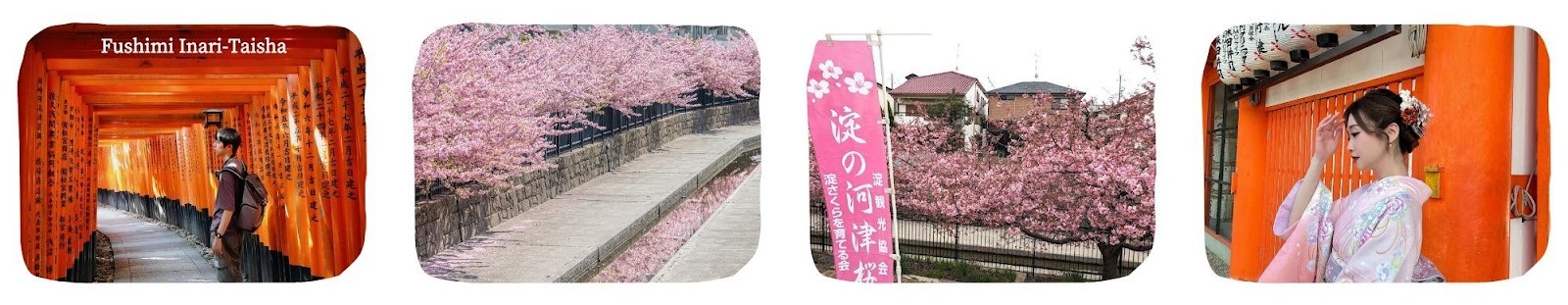 - Ngắm hoa anh đào sớm Kawazu Zakura Yodo: Hoa anh đào Kawazu-zakura (河津桜) – loài hoa nở rất sớm – bắt đầu khoe sắc. Hàng năm, vào đầu đến giữa tháng 3, khoảng 300 cây hoa anh đào Kawazu trồng dọc theo con kênh tại khu vực này sẽ nở rộ, biến nơi đây thành địa điểm ngắm hoa sớm nhất ở Kyoto (Tình trạng hoa nở phụ thuộc vào điều kiện thời tiết khách quan)