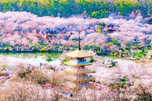 Khám phá Đông Hồ Đào Viên, nằm trong Khu thắng cảnh Đông Hồ Mạc Sơn của Vũ Hán, Kỳ quan thực vật này trưng bày hơn 10.000 cây anh đào với 60 giống khác nhau, với hoa nở rộ sánh ngang với Đại học Vũ Hán. Từ cuối tháng 2 đến tháng 3 hàng năm, nơi đây biến thànhthiên đường hoa anh đào rực rỡ.