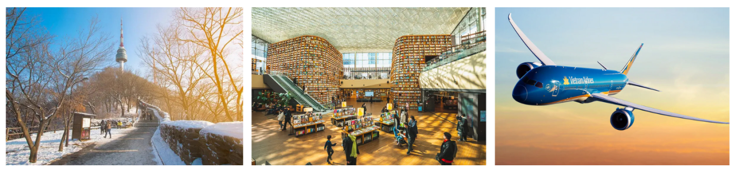 - Vé máy bay khứ hồi theo đoàn của hàng không quốc gia Vietnam Airlines (VN) : Hà Nội – Seoul -Hà Nội bao gồm 1 kiện 23kg kí gửi + 10kg xách tay.