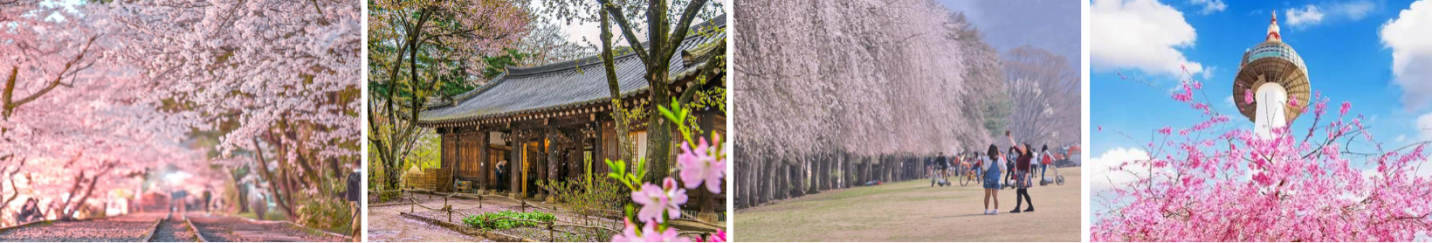 - Thưởng ngoạn và chụp ảnh trên con đường hoa anh đào nổi tiếng nhất Seoul, Công viên Yeouido đường Yunjungno phía sau tòa nhà Quốc Hội - điểm ngắm hoa anh đòa nổi tiếng nhất ở Seoul, được viền bằng 1.400 cây hoa anh đào nở đầy những bông hoa màu hồng nhạt.