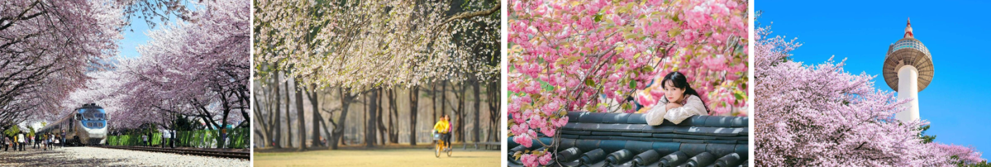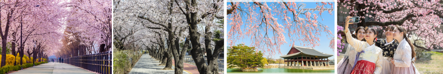 - Thưởng ngoạn và chụp ảnh trên con đường hoa anh đào nổi tiếng nhất Seoul, Công viên Yeouido đường Yunjungno phía sau tòa nhà Quốc Hội-điểm ngắm hoa anh đòa nổi tiếng nhất ở Seoul, được viền bằng 1.400 cây hoa anh đào nở đầy những bông hoa màu hồng nhạt.