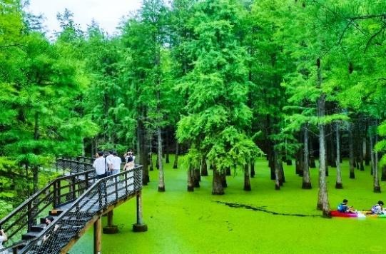 - Xe đưa đoàn đi tham quan: Nhà Máy liên Doanh Đức - Trung Quốc – tham quan và mua sắm các dụng cụ thiết bị nhà bếp. Đầm lầy Thanh Sơn - hay còn gọi là Hồ Matcha – là điểm dừng chân mang sắc xanh yên bình hiếm có. Thanh Sơn được ví như “vùng đệm xanh” của Hàng Châu, là nơi lý tưởng để du khách tận hưởng không khí trong lành, dạo bước trên cầu gỗ, ngắm cảnh và chụp ảnh giữa thiên nhiên nguyên sơ.